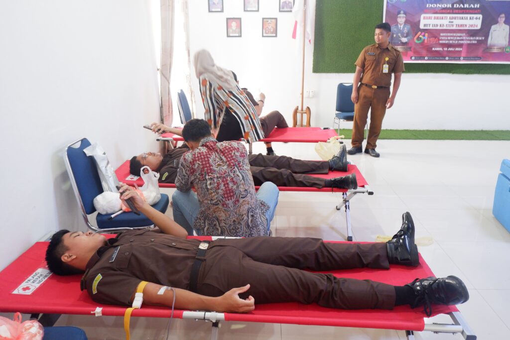 Kejaksaan Negeri Natuna melaksanakan kegiatan Donor Darah dalam rangka Hari Bhakti Adhyaksa ke-64. Bertempat di Aula Kantor Kejaksaan Negeri Natuna, kegiatan ini diikuti oleh Kepala Kejaksaan Negeri Natuna, Kepala Seksi, Kasubbagbin, Ikatan Adhyaksa Dharmakarini (IAD) Natuna, Pegawai, PPNPN , dan Kepala RRI Ranai. Bekerjasama dengan RSUD Natuna dan dibantu dengan 5 orang tenaga medis . Kegiatan Donor Darah ini diharapkan dapat bermanfaat dan berguna untuk memenuhi kebutuhan darah bagi warga masyarakat di Kabupaten Natuna.