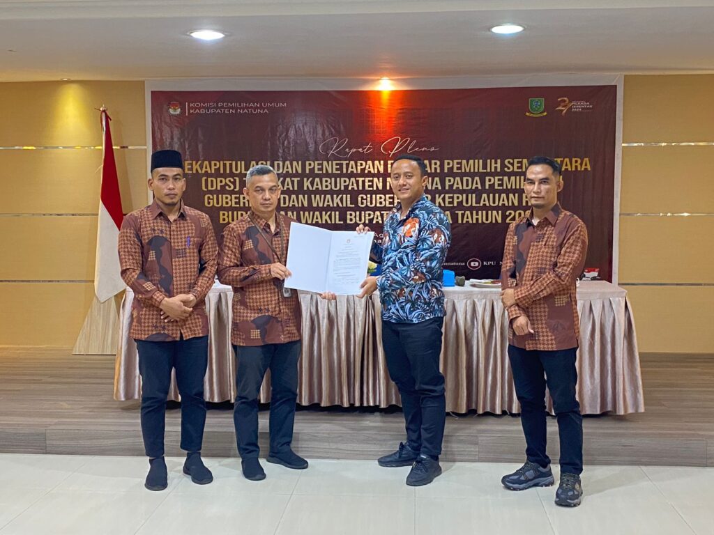 Dari Rapat Pleno Rekapitulasi dan Penetapan Daftar Pemilih Sementara Tingkat Kabupaten Natuna pada pemilihan Gubernur dan Wakil Gubernur Kepulauan Riau, Bupati dan Wakil Bupati Natuna Tahun 2024 diperoleh hasil, Bahwa:
